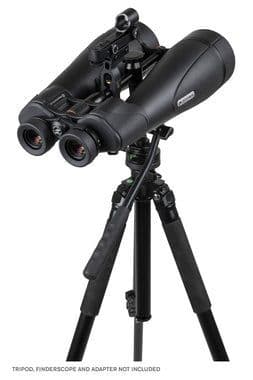 The Celestron SkyMaster Pro ED binocular is tripod-adaptable. Use the built-in tripod adapter on the balance compensation rail to mount it on any standard photographic tripod or monopod for extended viewing or digiscoping (photography through the eyepiece).