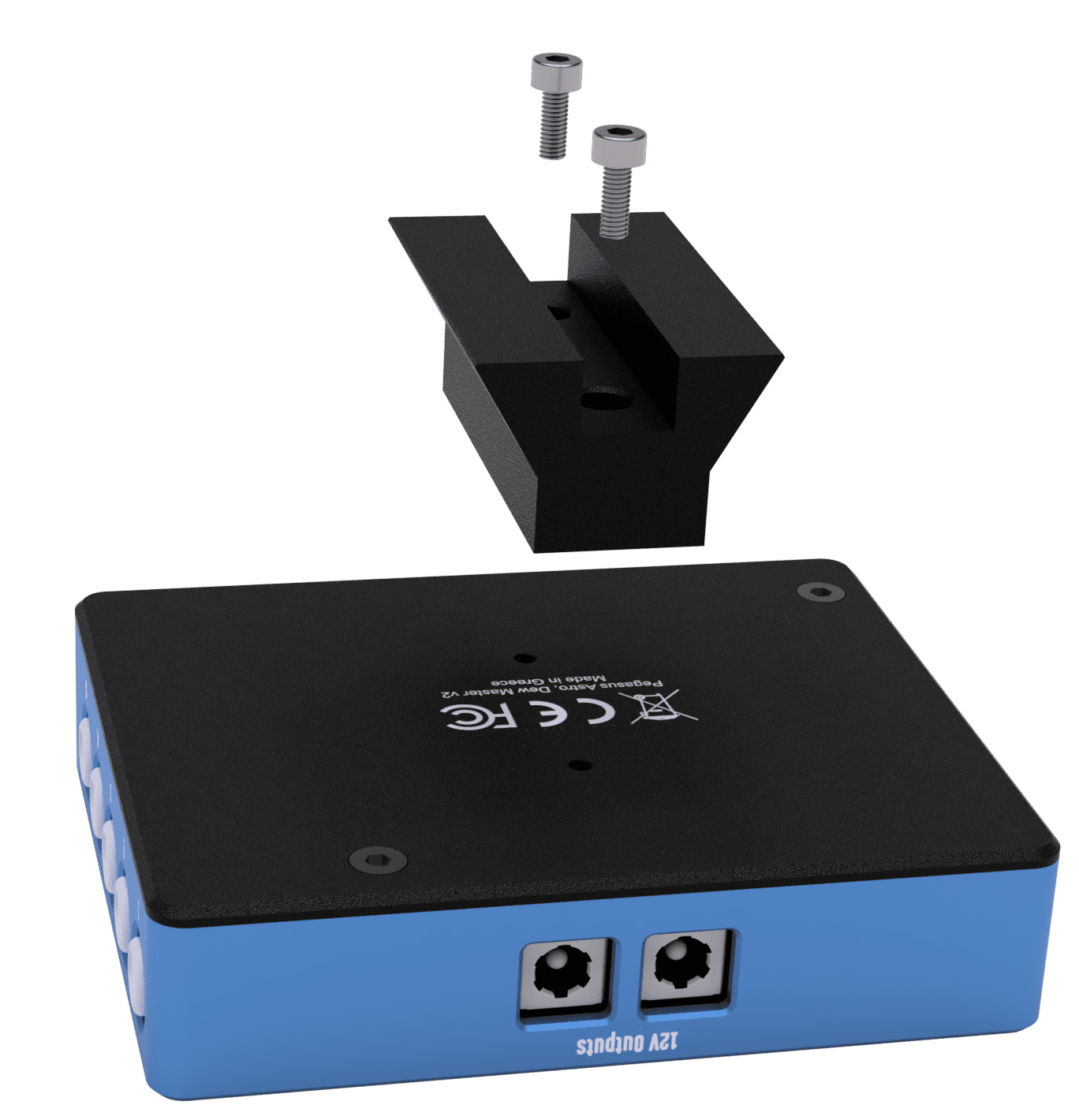 DewMaster2 features a 3 x M3 mounting hole pattern on the bottom, compatible with our PEG-SHOE attachment, enabling secure mounting to a shoe holder for convenient and stable positioning.