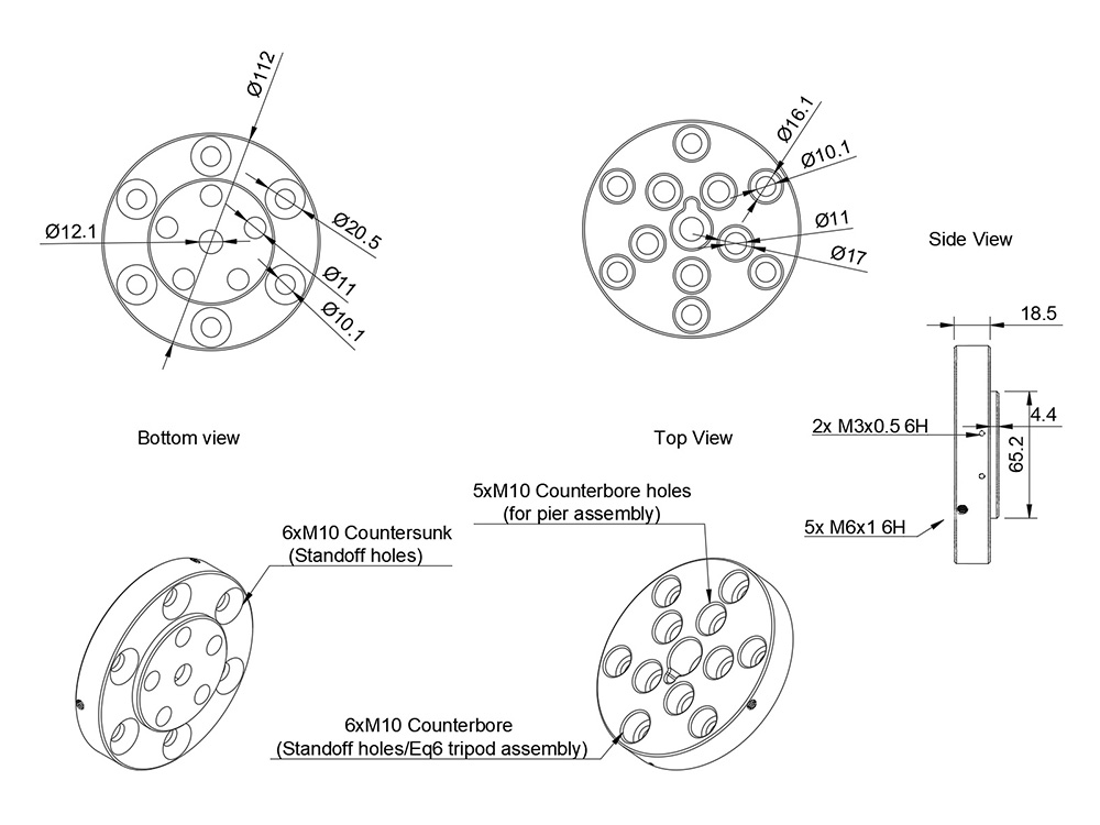 Does not require counterweights for payloads up to 20 kg. However, if you wish to install counterweights for higher payloads, there is a compatible M12 threaded shaft hole at the end of the DEC axis.