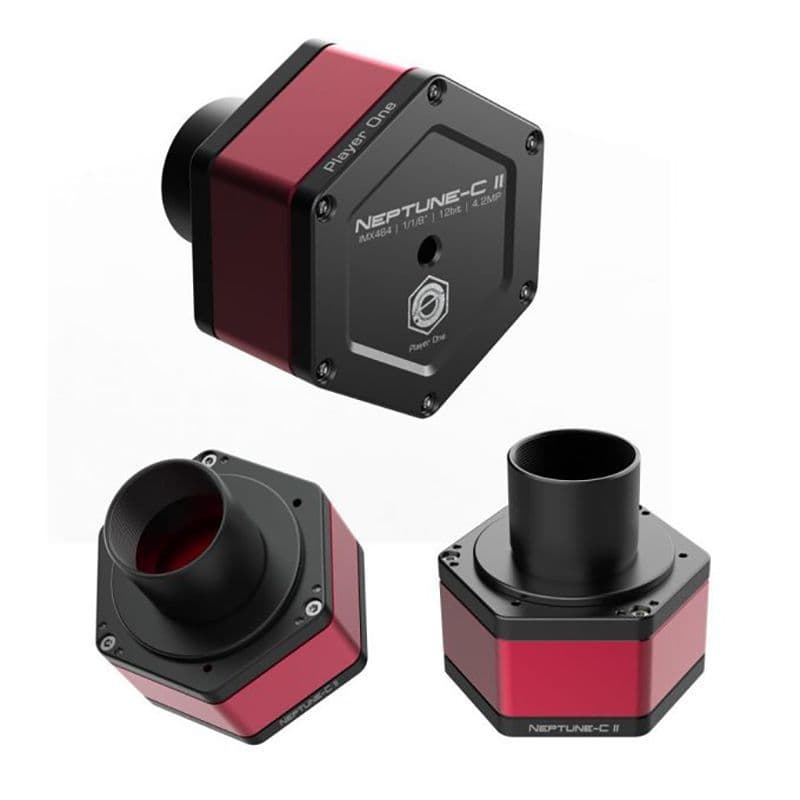 Neptune-C II is a planetary camera developed by Player One Astronomy, which adopts the Sony IMX 464 1/1.8” format sensor. The 2.9um pixel size accommodates a good depth of 12ke with a total of 4.2MP (the resolution is 2712*1538), and the diagonal is 9mm.